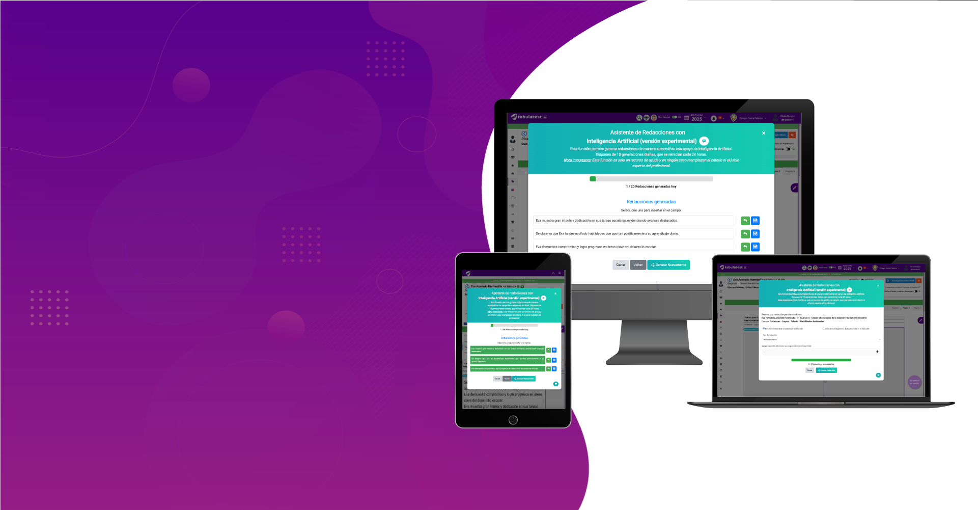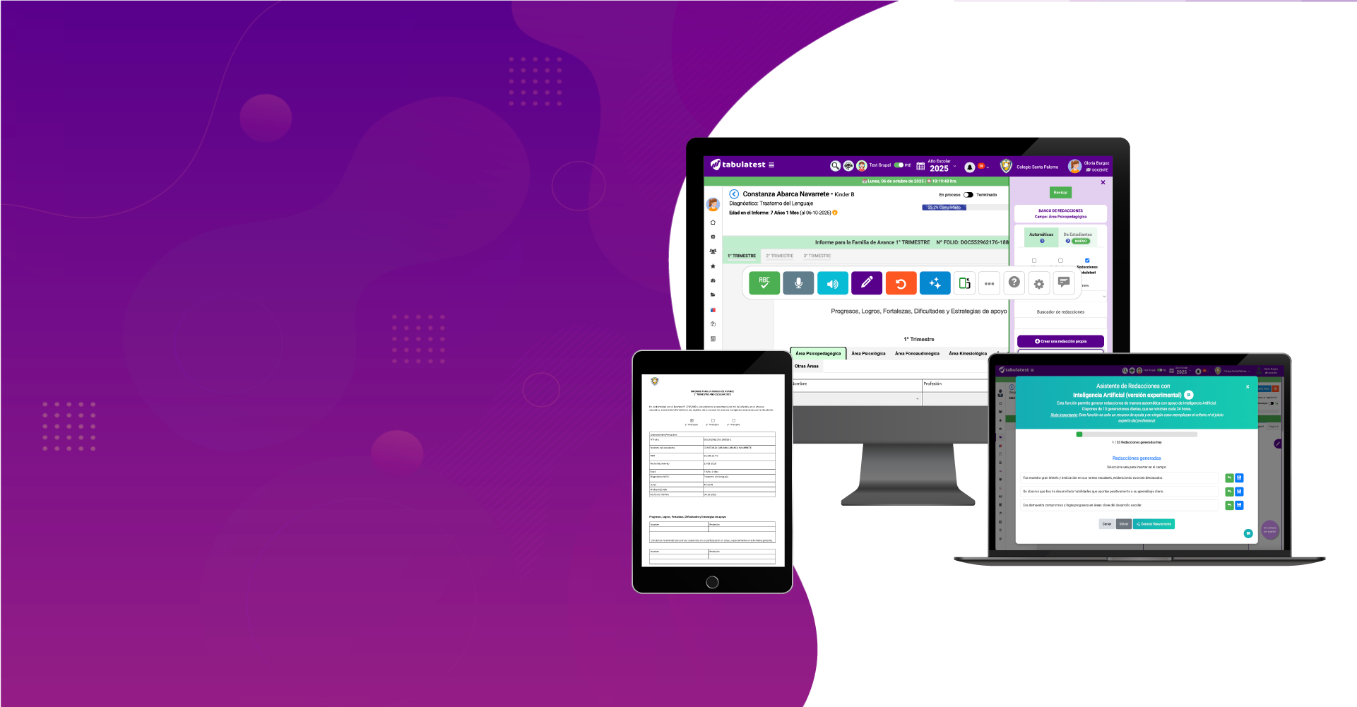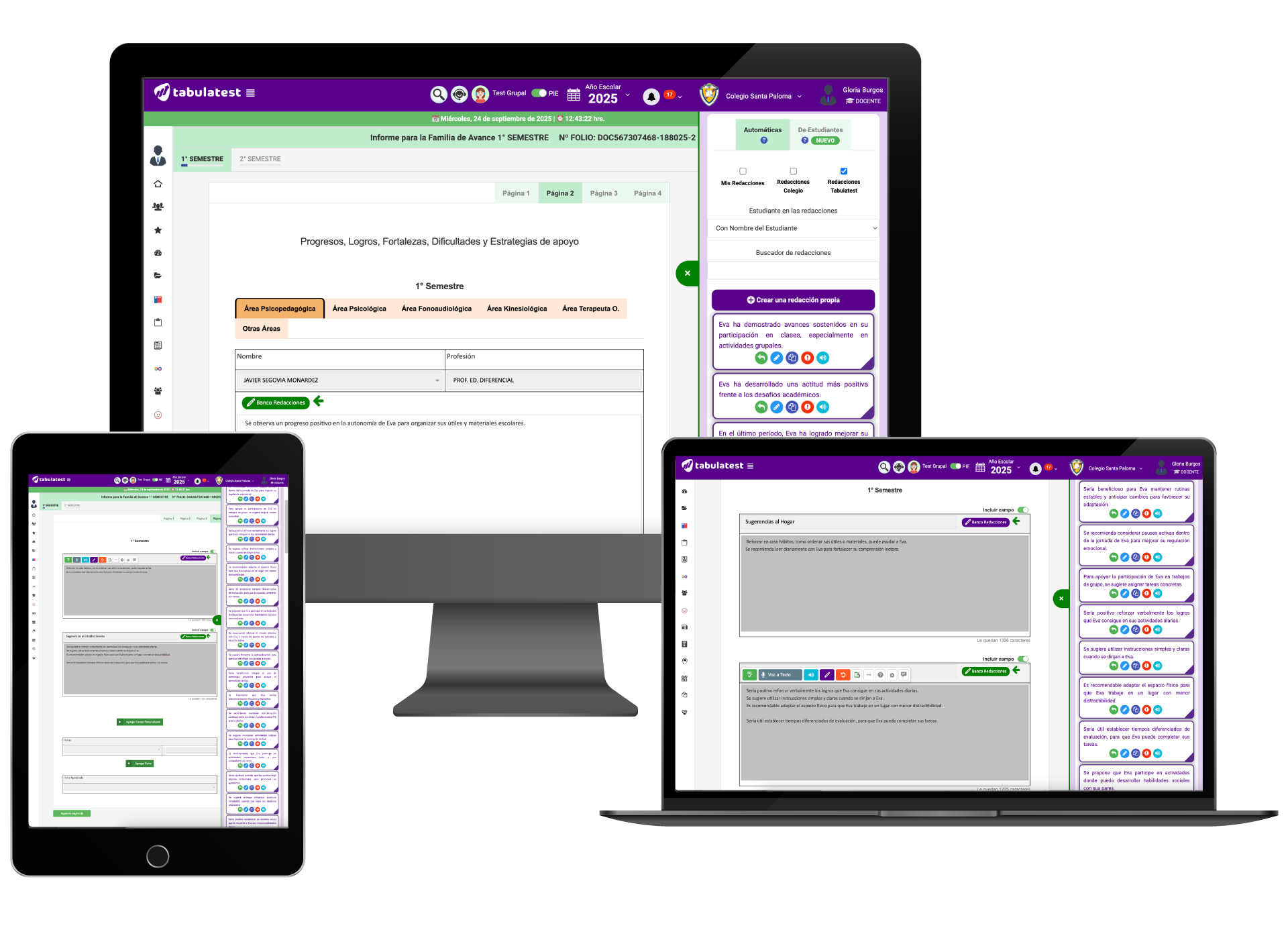 - Ofrece sugerencias automáticas para informes y evaluaciones.
