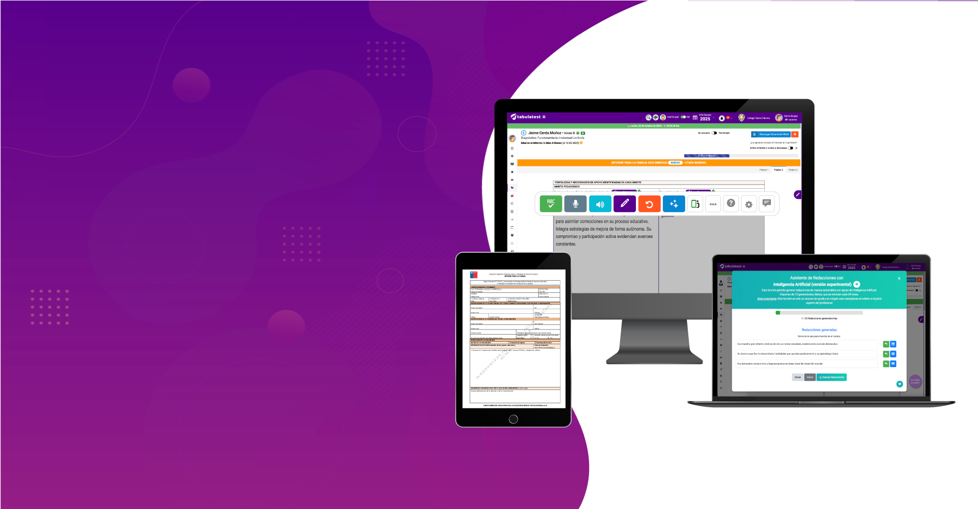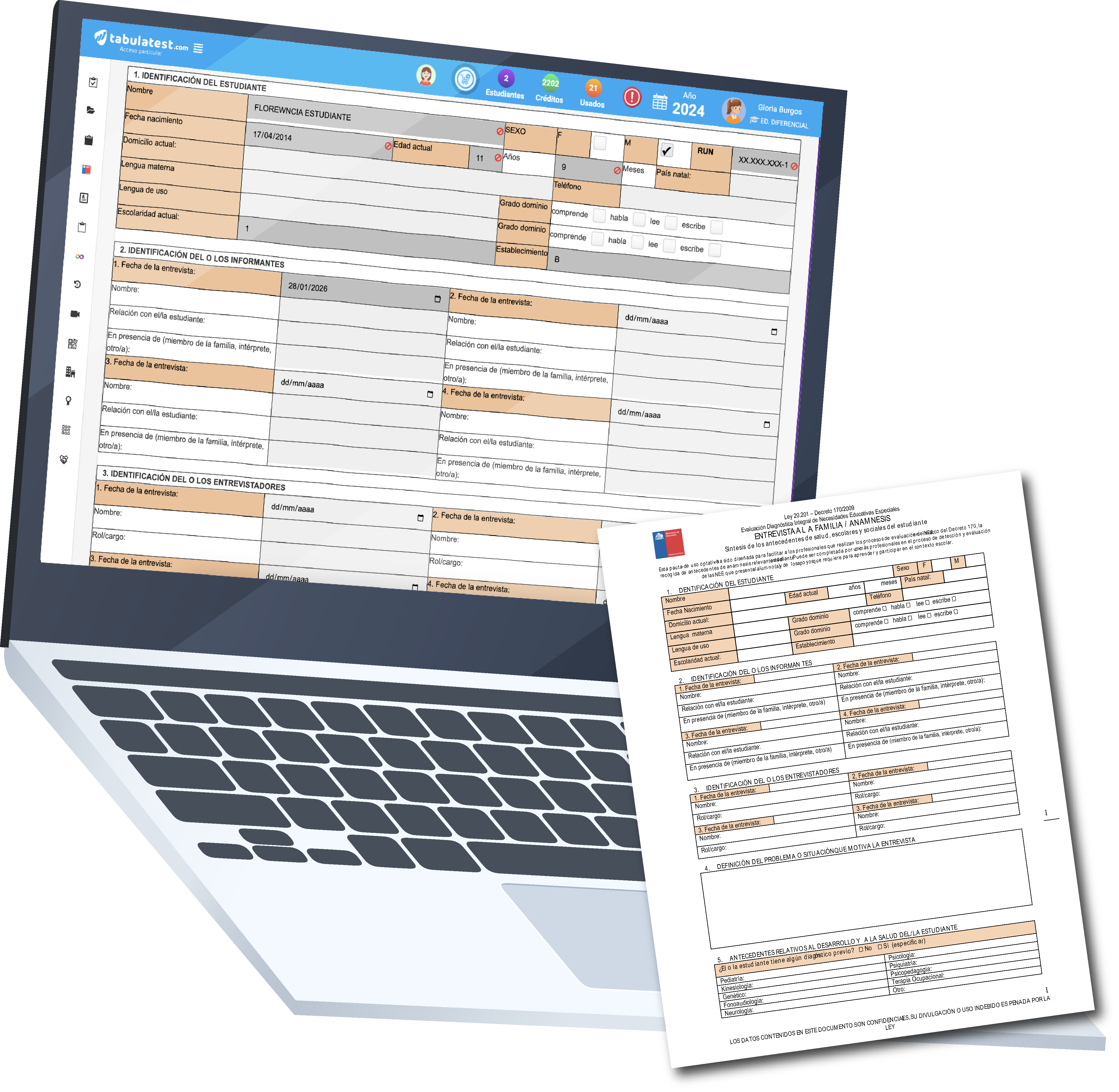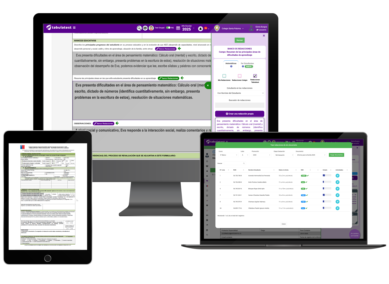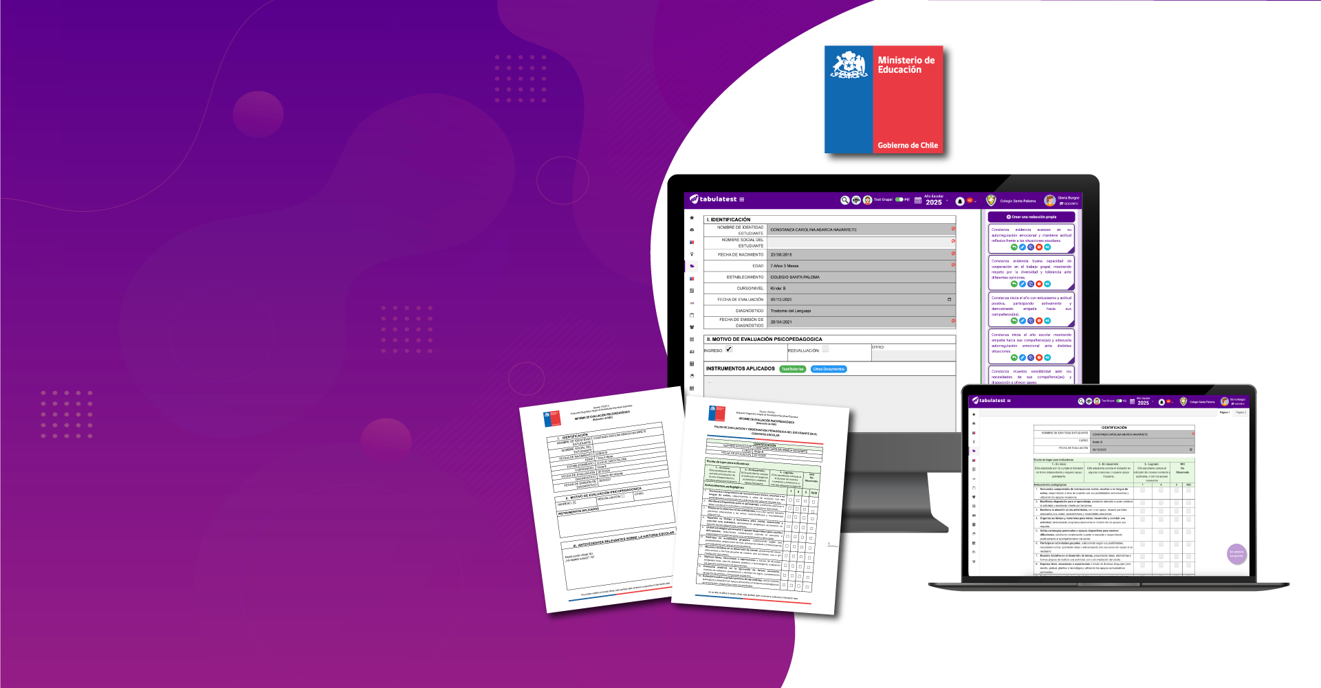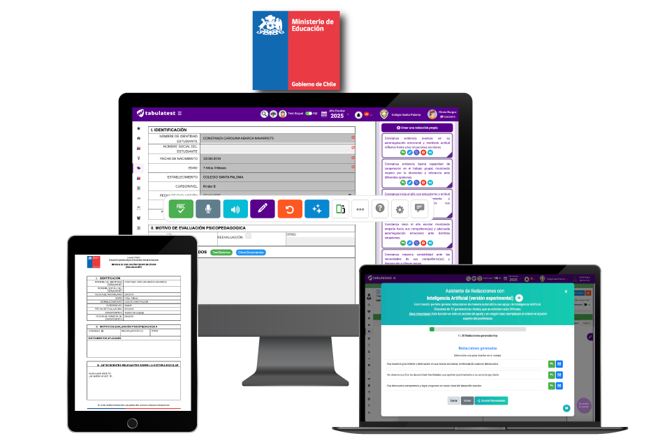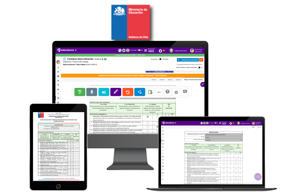 TabulaTest permite tabular diversos test utilizados en el decreto 170, además de contar con Pruebas Informales desde Prekinder a 4° Medio.