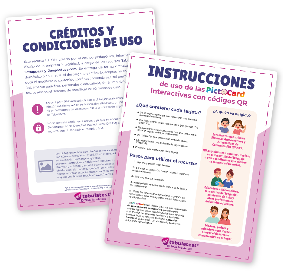 Este proyecto fue desarrollado por el equipo pedagógico y de diseño de Tabulatest, con un enfoque en accesibilidad, comunicación efectiva y apoyo a la diversidad. Forma parte de las estrategias promovidas por la Ley de Autismo, que fomenta el uso de apoyos visuales para garantizar una comunicación accesible.