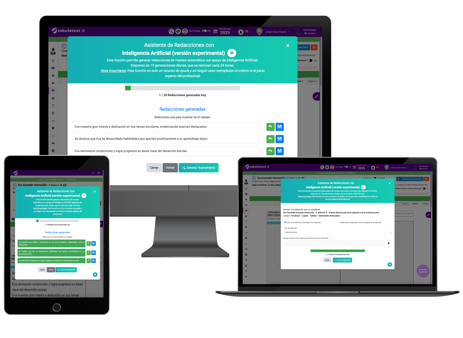 - Redacciones asistidas por IA adaptadas al contexto educativo.